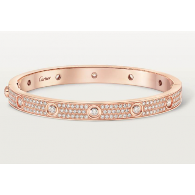 LOVE手镯,750/1000玫瑰金,镶嵌216颗圆形明亮式切割钻石,总重3.15克拉(适用尺寸:17)。